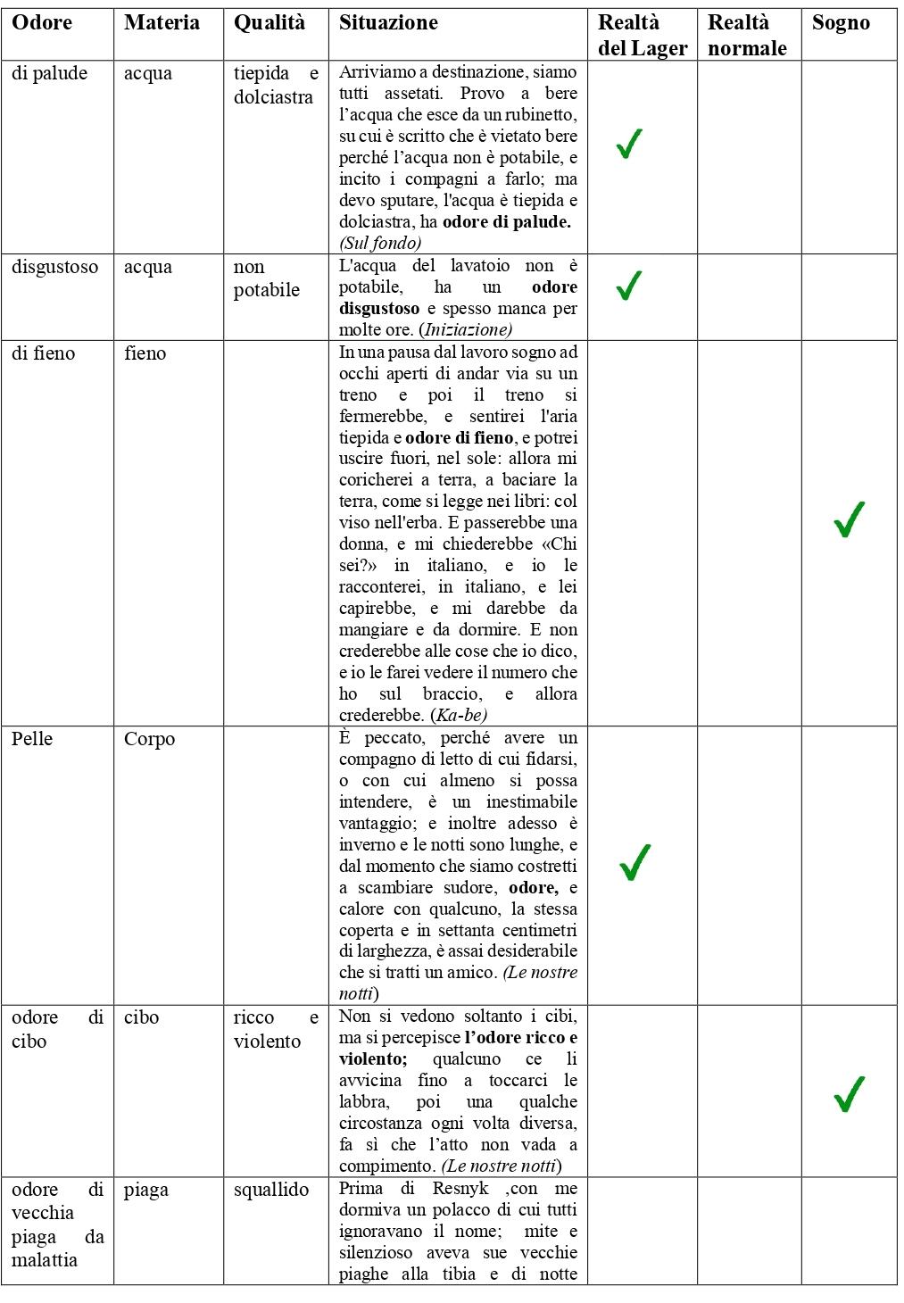 Incontro con l’autore Lezione 1: Vita e opere di Primo Levi. Focus su Se questo è un uomo. Lezione 2: Breve presentazione del Sistema periodico, Lettura e analisi di Titanio e svolgimento delle attività di analisi del testo 1, 2 e 3 (pp.338-339). Gli esercizi proposti sono stati svolti in forma scritta e hanno permesso agli studenti di riprendere e potenziare i contenuti studiati nei mesi precedenti, come ad esempio le caratteristiche della fiaba, le funzioni di Propp, la costruzione di un’analisi testuale coerente e organica. È stata introdotta anche una nuova figura retorica, l’ossimoro, che ancora non era emersa dai testi letti fino a quel momento. Nella parte interpretativa, riguardo al significato del cerchio disegnato con il gesso, sono venute fuori delle considerazioni molto interessanti da parte degli studenti sul valore simbolico di quell’ostacolo. La maggior parte di loro ha accolto la tesi di Levi, che è stata argomentata con ricordi di episodi verificatisi durante l’infanzia. Lezione 3: Attività 4 (p. 340). Gli esercizi proposti dall’attività 4 sono stati eseguiti sotto forma di una coinvolgente e giocosa conversazione con i ragazzi che hanno attinto ai loro ricordi e al loro vissuto per raccontare situazioni divertenti, recitare conte e riportare le loro parole infantili coniate su onomatopee e analogie fonetiche. Verifica sommativa: attività di scrittura creativa sul racconto Titanio, indicata sulla Guida per il docente allegata all’edizione scolastica (p. 79). Si riporta un estratto dall’elaborato di una studentessa: "L’acchiappatopi" Durante la mia prima infanzia, passavo i pomeriggi dai nonni a giocare nel loro giardino. In uno di quei giorni mi vidi salutare da un uomo con un camice blu: sembrava un gigante con le mani tutte sporche di un materiale misterioso. Impaurita corsi da nonna e le domandai chi fosse quel curioso personaggio. Lei rispose che si trattava del suo vicino tipografo e che il giardino di lui confinava con il loro. Iniziai a domandarmi cosa fosse un tipografo. Ma sì! Un acchiappatopi! “Certamente sarà così” pensai tra me e me. Iniziai a guardare da un finestrone che dava sul giardino di nonna cosa vi fosse dentro. Strani macchinari e utensili mi si presentarono alla vista e non ebbi dubbi sul fatto che servissero ad acchiappare i topi. Vidi anche un’enorme lama e immaginai la brutta fine che avrebbero fatto quegli animaletti. Il giorno dopo nonno si recò dal vicino per dei lavori in giardino e, ad un certo punto, mi chiese di portargli un bicchiere d’acqua. Impaurita, implorai nonna di accompagnarmi. L’omone si avvicinò a me con il suo grembiule tutto imbrattato di inchiostro colorato e affermò: “Mi è scoppiato l’inchiostro del macchinario nel reparto stamperia” e ci fece accomodare dentro la sua officina. Quello che mi trovai davanti mi fece rimanere a bocca aperta! Non c’erano topi vivi e morti, ma macchine che stampavano, tagliavano, piegavano e imballavano, e facevano tutto da sole, azionate chissà da quali misteriosi individui nascosti dentro di loro. Dovevano essere un po’come quello dietro la lavatrice accesa di casa mia, che tenta sempre di risucchiarmi quando passo davanti all’oblò. Rimasi molto meravigliata dal macchinario che stampava ogni tipo di carattere a colori, credo fosse sempre molto felice. Da quel giorno non ebbi più paura di incontrare il vicino dei miei nonni che anzi risultò davvero simpatico. I mestieri di Primo Levi Lezione 4: Visione del documentario Primo ufficio dell’uomo. I mestieri di Primo Levi. La lezione sul documentario è stata divisa in due parti: nella prima ci siamo soffermati sull’importanza delle sensazioni per il chimico, specialmente quelle olfattive; la seconda frazione del video mi ha permesso di parlare del libro La chiave a stella e del personaggio di Tino Faussone. Lezione 5: Lettura e commento del racconto tratto dalla raccolta Storie naturali, I mnemagoghi. Lezione 6: Lettura del capitolo Batter la lastra tratto da La chiave a stella con focus sul verbo fare (si sono esposte alcune considerazioni sul registro basso di Faussone. Il montatore utilizza costantemente il verbo fare, senza sforzarsi di cercare possibili sinomini, sintomo questo di una povertà lessicale che riguarda anche molti studenti). Lezione 7: Tipologie di scrittura: Il rapportino di laboratorio. Verifica sommativa: testo argomentativo sulla tesi de La chiave a stella: «Se si escludono istanti prodigiosi e singoli che il destino ci può donare, l'amare il proprio lavoro (che purtroppo è privilegio di pochi) costituisce la migliore approssimazione concreta alla felicità sulla terra: ma questa è una verità che non molti conoscono». La memoria di un uomo sagace Lezione 8: ricerca della parola odore in Se questo è un uomo: contesto, denotazioni e connotazioni del termine. Lezione 9 e sgg: relazione scientifico-letteraria. Come sintesi di tutto il percorso, abbiamo effettuato un “esperimento”, immaginando che Levi ci conducesse tra le boccette del suo laboratorio, contenenti i suscitatori di memorie, cioè gli odori di Auschwitz che rievocano i momenti della prigionia. Il lavoro è ispirato al racconto I mnemagoghi e rientra nella tipologia di scrittura della relazione di laboratorio, anche se rivisitata in chiave letteraria. Dopo una ricerca del termine «odore», nei capitoli letti di Se questo è un uomo, i ragazzi hanno creato una tabella (aggiunta ad uno testo scritto da me) nella quale hanno inserito tutte le qualità della parola, unitamente alla porzione di testo in cui si trova, ragionando sulle scelte lessicali (in particolare gli aggettivi) da parte dell’autore. "La memoria di un uomo sagace" Il dottor Levi ci riceve con visibile emozione nel suo laboratorio chimico. Nell’ambiente pulito e ordinato, ma buio e vagamente misterioso come l’antro di un alchimista, si respira un’aria antica e insieme enigmatica che ci mette un po’ di inquietudine. Lo sgu